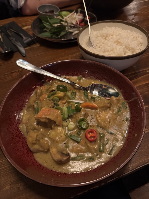 Marco’s mom and I chose chicken curry with a side of white rice. Delicious! Subtler than I remember, in a good way.