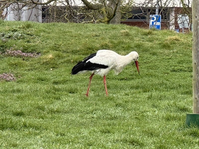 Last month while visiting Rijswijk I spotted a stork walking around in the grass. I snapped a photo of their adventure (with a good zoom, to not disturb it):