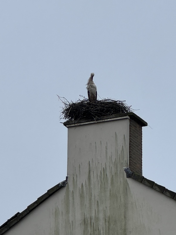 I remembered that I had seen storks in this area before a few years back. Sure enough, I turned around and the nest was in the same place, high up at the top of a building. The area underneath the nest looked cleaner back then, though…