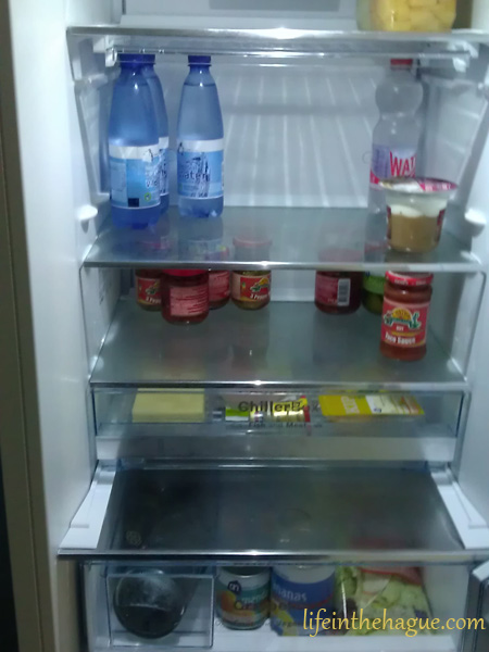 Random food inside the fridge. Thankfully it’s been pretty cold in the Netherlands, so he was able to bag the perishables and put them outside for the night while waiting for the old fridge to defrost and this one to arrive.