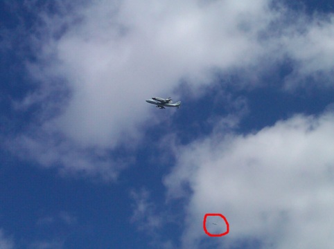 I was not able to get outside to see it, but the space shuttle Enterprise flew past our college today (and also apparently circled around the campus) before continuing back to Manhattan. The flight path of the jet was from Virginia, past Manhattan up the Hudson river to Tappan Zee bridge, and back south to the Statue of Liberty. It then did a large circle over northeast New Jersey, flew over New York City for an hour, and then headed to JFK airport.