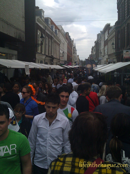 Obviously I am on the wrong side of the ocean to be showing you pictures of Koninginnedag (Queen’s Day), but Marco took some pictures to show me what it is like. I won’t go into detail, except to say that it is the celebration of Queen Beatrix. And it’s a day where everyone loves to wear orange (well, moreso the tourists). You can read an offiical publication for the Hague’s celebrations at the website, haagsekoninginnedag.nl. When Marco sent me that link, he spent a bit of time muttering about why they were mentioning Chinatown, since it is only a street and a half, of which only half of the shops are actually Chinese!