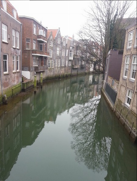 typical Dutch street in Dordrecht. Note the building on the left which is leaning forward – many builds have this “quirk”.