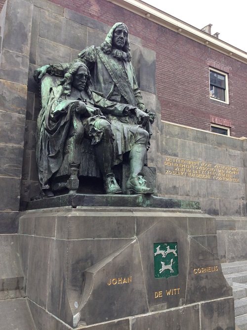 A statue of Johan de Witt (standing) and his brother Cornelis de Witt (sitting). Bother brothers were murdered by the House of Orange.