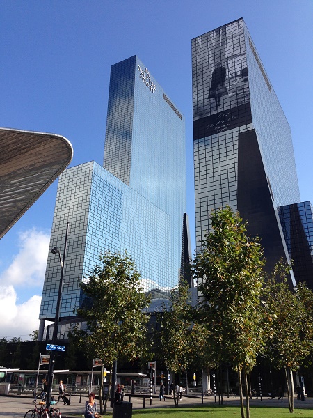 Not really related to anything we wanted to see, but I just loved how the sun played off these two buildings next to the train station. The one on the left is Delftse poort.