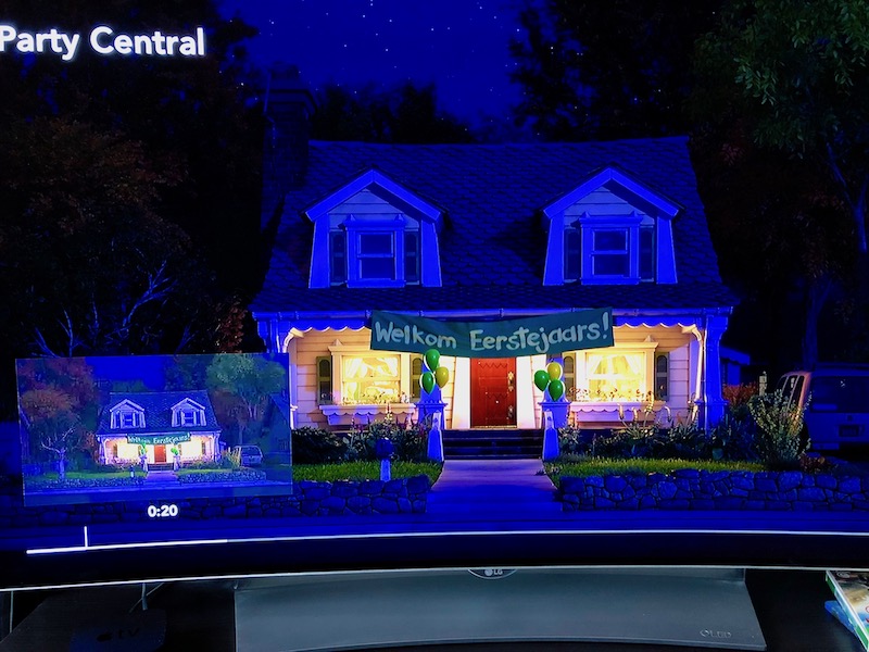 The banner across the front door says Welkom Eerstejaars! or in English: Welcome Freshmen! The short was about a college party with the Monsters’ Inc. crew. There were no subtitles and no Dutch in the credits at the end, but there was still Dutch in this scene. I think it is a Pixar thing though – I can remember that Finding Dory also translated the signs in the movie into Dutch. I find it amusing for sure.