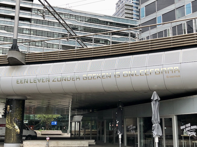 A few days back I snapped a photo. It shows a quote on the side of the tram viaduct leading into Centraal Station: