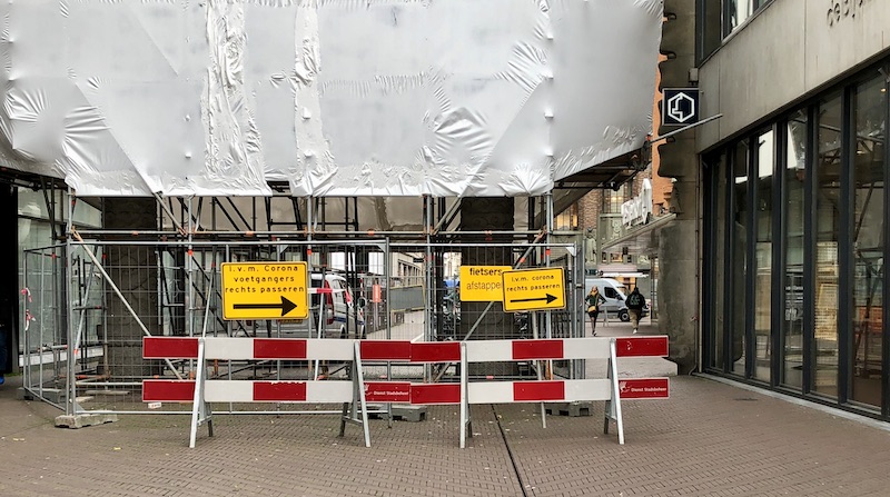 Recently I noticed a new coronavirus measure that appeared in The Hague: clear walking paths near the Chinatown gate, which is found between Bijenkorf and Superdry.
