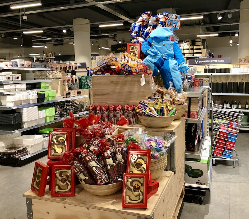 I must admit those are some rather luxurious Sinterklaas letters (aka chocolate letters, usually a chocolate “S” if they want to keep it generic). And I think they are smart to have the Zwarte Piet costume (the blue clothes in the upper right) without showing a face. That’s one way to avoid the blackface discussion when it comes to Zwarte Piet (English Wikipedia).