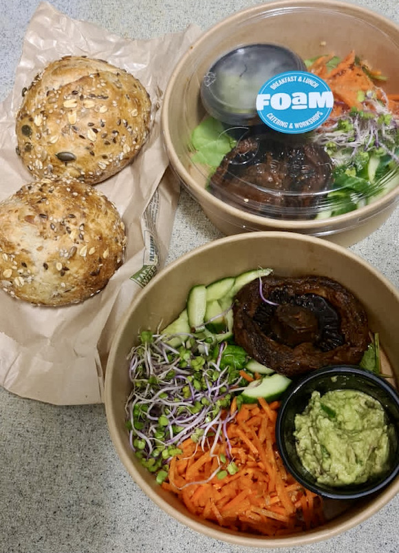 Doesn’t that look delicious? That was one of the FOAM @ home options last Friday (Facebook link). The best part? The burger was actually a giant portbello mushroom. The rest of the ingredients were Asian inspired (an Asian guacamole, shredded carrots, and a coleslaw).