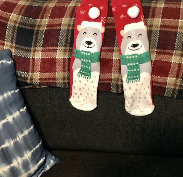 Here is my first Christmas gift from Marco – a stocking stuffer! Cute little Christmas themed socks, perfect for keeping my feet warm during the day. This has become more important since we started working from home.