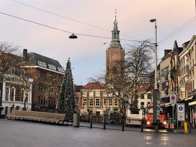 Take a look at the Christmas lights at the Grote Markt (denhaag.com in English). Grote Markt is usually a popular bar/club hangout with an active nightlife. Things are of course pretty quiet these days, although the restaurants are still open for takeout or delivery.