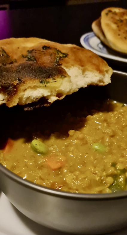 Tonight Marco and I enjoyed a meal of Indian Dahl and naan bread from the FOAM restaurant in The Hague – yum yum yum: