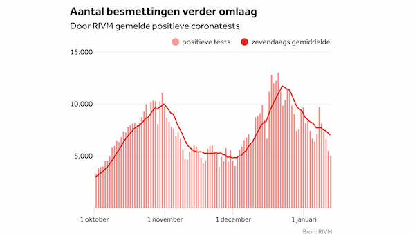 We had about 5,000 cases today, 500 less than yesterday. But, the decline is too slow and the hospital and ICU intakes are not showing that much of a decline. The threat of the British variant of the coronavirus also looms. During the press conference the Minister of Health said there were about 100 recorded cases of that variant, with about half of them in the township of Lansingerland, not that far from The Hague. The township is currently working on testing all of its residents over two years of age–the first area in the Netherlands to do so (article in Dutch at nos.nl).