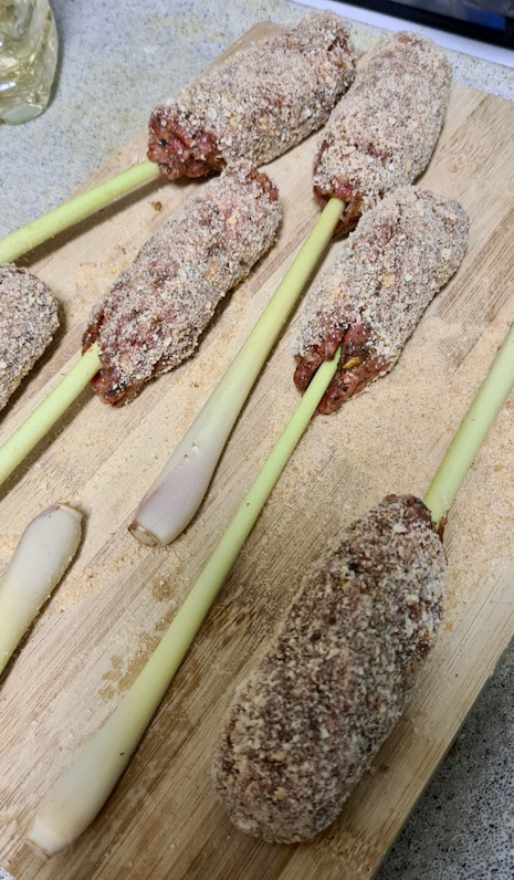 The cool thing about this recipe is that the sticks that normally hold the satay were sticks of lemongrass.