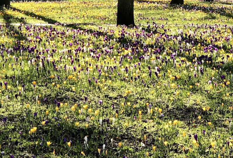 First we had snow at the Lange Voorhout, and now a few weeks later we have beautiful spring flowers.