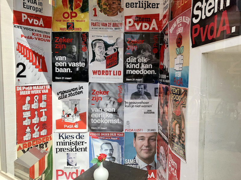 Here is a photo of the political party PvdA’s office (Partij van de Arbeid, Labour Party… English Wikipedia page). There are lots of old school advertisements to be seen: