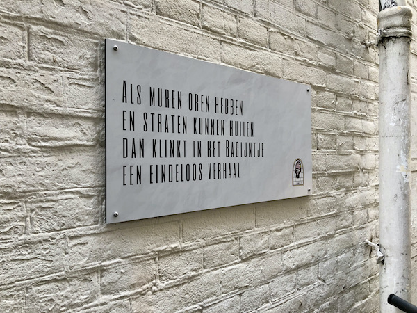 If walls had ears / and streets could cry / then resonating in the Bagijntje [street] / is an endless story. Of course it sounds better in Dutch!