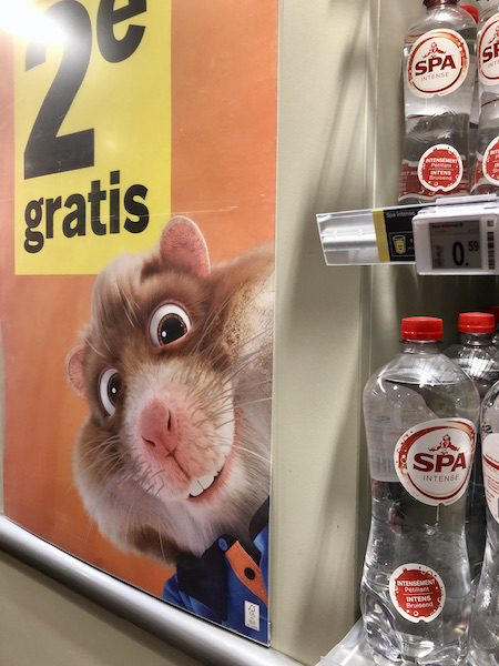 Imagine my surprise when the mascot at Albert Heijn (one of the local grocery stores) was staring at me creepily while I was choosing which sparkling water to purchase. I don’t know; maybe it was the wide open eyes staring back at me? Also slightly creepy is the very realistic pink nose with wrinkles..