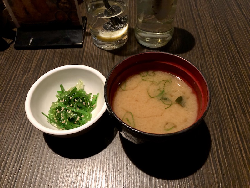 The lunch begins with a miso soup. I’m not a huge fan of tofu blocks, but they do work in this soup in small amounts.