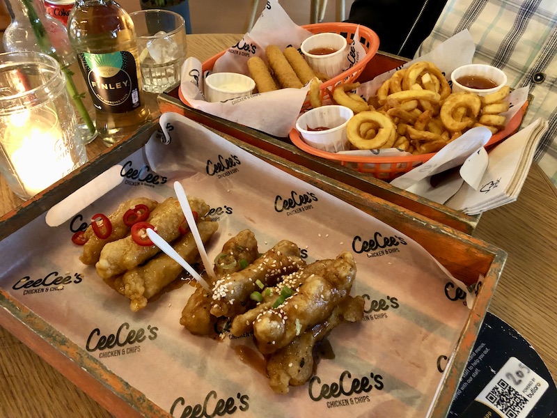 This past weekend Marco and I visited the food halls in Haagsche Bluf (denhaag.com in English), a tiny, upscale shopping area in the heart of the city centre. The food halls (official website in English) have 10 food stands with various types of food like Chinese, Japanese, Arabic, Malaysian, etc. We chose CeeCee’s chicken and chips for our first visit: