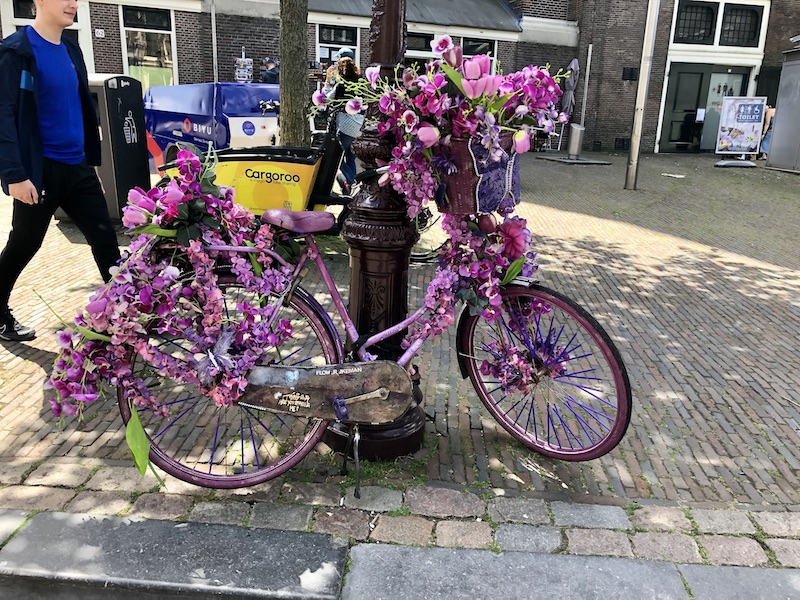 Speaking of flowers: a lovely, flower covered bike. It definitely demands your attention.