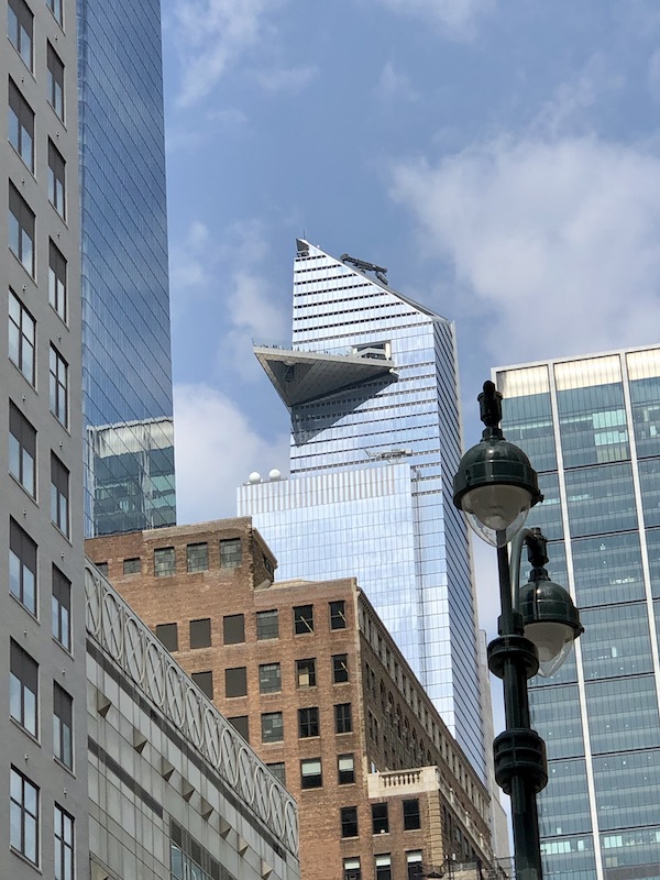 The Edge, from a distance. It is the triangle shaped platform in the photo. You can of course pay money to go up there and enjoy the views (some of us did, but I declined). Read more at: https://en.wikipedia.org/wiki/30_Hudson_Yards. Here is a look at the observation deck which includes a glass floor you can stand on. You can also climb part of the top in an attraction called “City Climb at Edge”, which is the highest open-air building ascent. Hmm.
