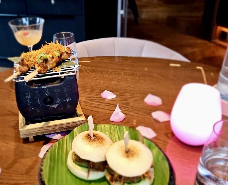 I booked a reservation at Blue Blood in The Hague as a surprise for Marco (he didn’t know where we were going until we were there). The restaurant offers “a mash-up of the Peruvian and Japanese cuisine”. I had read good things about both the food and service at this restaurant and they did not disappoint. When booking the reservation I was asked if this was for a special occasion. I of course clicked on anniversary. When we arrived we saw they had given us a table in the corner next to the canal, with rose petals on the table and a glass of cava (on the house) to toast the occasion.