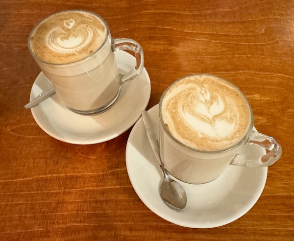 First, our drinks arrived. Very tasty chai lattes that definitely hit the spot.