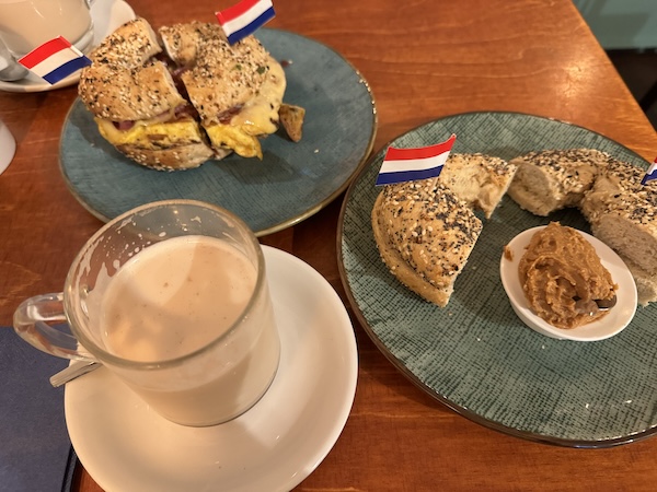 A few weeks ago Marco and I tried Netherlands Bagels for the first time. It’s in the city centre, a few minutes walk from the Grote Kerk. This bagel shop sells New York style bagels (the owner is originally from New York). Read more about the shop’s history.