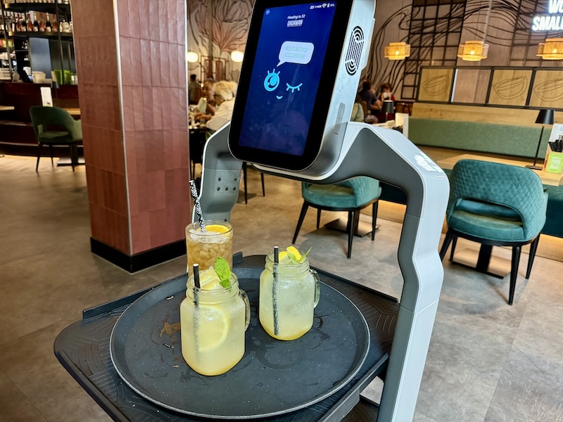 Okay, okay. The robots generally just bring you your drinks, not the food. But still, it’s a first for me. It was good food as well, although I oddly had a craving for – and went for – a hamburger at the Asian fast food fusion place. It was good, and not so large that it was messy. It wasn’t the best hamburger I’ve ever had, but it hit the spot. If that makes sense.