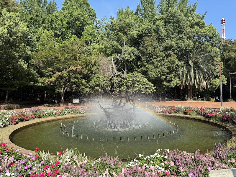 That afternoon we walked near the Imperial Palace and briefly into the Hibiya park, where I snapped a lovely photo of a fountain (and mini rainbow).
