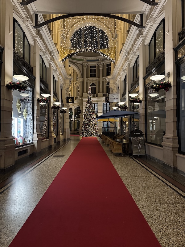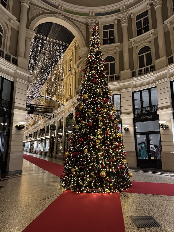 This is in the older part of De Passage, outside of the Apple Store. The older part meets at this point. De Passage is designed in such a way that the Christmas tree is visible from everywhere.