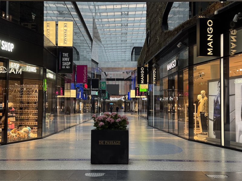 Here’s a bonus picture of a very quiet moment in De Passage, the covered shopping area in The Hague’s city centre. The flowers in the middle were a nice touch.