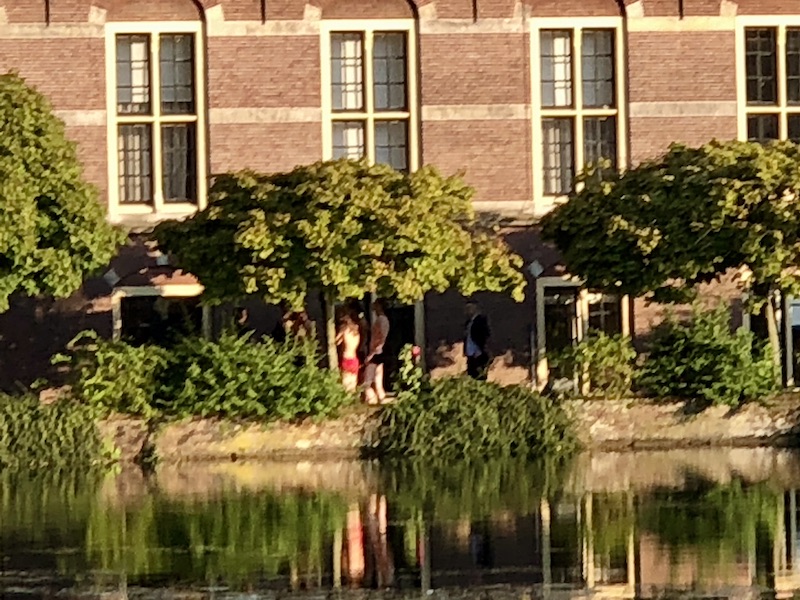 This evening I took a photo of hooligans trespassing on the grounds of Buitenhof. I assume they took a swim to get there since they were wearing swim trunks. Ew. You couldn’t pay me to get in that water.