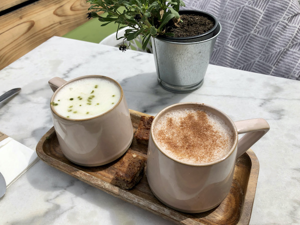 Earlier in September, Marco and I visited one of the local Bagels & Beans cafés to enjoy a lunch outside. It was a bit cold, but doable as long as I kept my jacket on. It was probably my first visit in 2020, although admittedly we usually only go a few times a year. Check out our chai lattes: