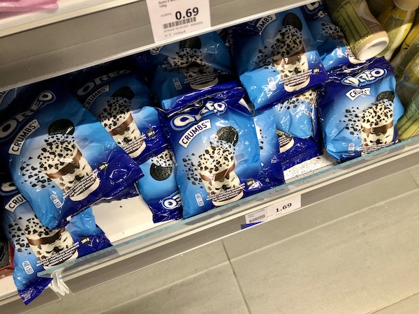 Okay, a bag of Oreo crumbs could be very useful indeed (make a bit of vanilla bean ice cream, mix these in–yummm). Perhaps one doesn’t need a 300g/10.5oz bag of crumbs but saying that sounds a bit like heresy…