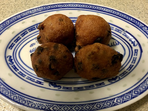 They are about half the size of normal oliebollen, and not yet sprinkled with the usual powdered sugar goodness (or in my case these days, cinnamon). We haven’t tasted them yet, so it is too early to tell if they were a good deal or not. Traditionally it is better to buy them on the street or make your own, so we will see.