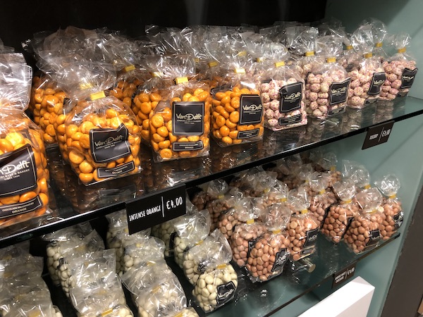 A close up look. Think of flavors like intense orange, disco dip, white chocolate, dark roasted coffee, etc. I bought a bag of the dark roasted coffee flavor. Yum! Of course, kruidnoten are a treat for Sinterklaas (5 December) so they aren’t being sold at the moment.