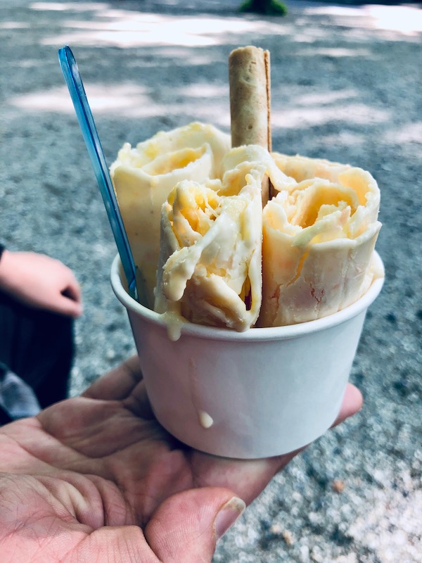 Marco’s mom had a meat pie while Marco had a katsu sando. That’s a Japanese sandwich with fried pork cutlets placed between white bread. You can also add lettuce and other condiments. Marco added pineapple reaper, a pretty spicy hot sauce. An earlier post I wrote about a restaurant called Umami has a photo of a katsu sando (see the last image in the post). And at Rrrollend I had a falafel pita. No photo though. It was messy but delicious.