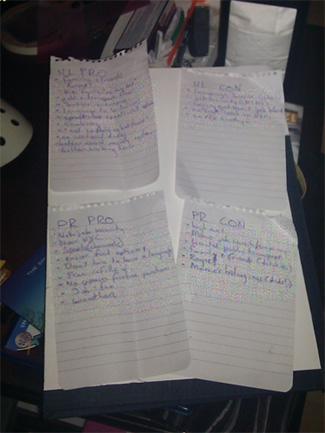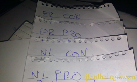 In addition to the laundry diagram that Marco found, another old thing that he found was the pro and con lists he and I made back in July 2011 when I visiting. They related to the decision of moving to the Netherlands or him moving to United States.