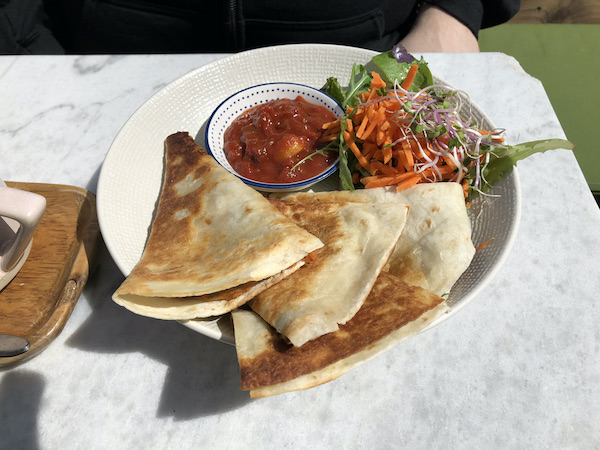 And Marco had a ‘no queso quesadilla’ with black beans, sweet potato and a spicy tomato jam: