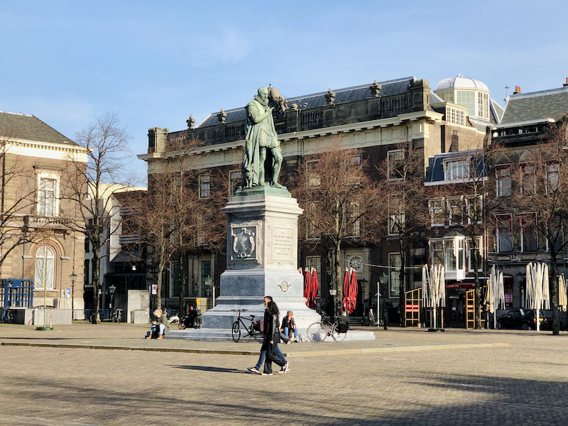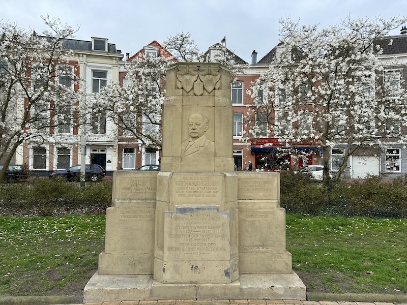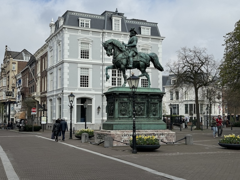 During the holiday weekend (a four day weekend!) I decided to take a picture of the equestrian statue of Willem the Silent outside of the Paleis Noordeinde. I was drawn by the color of the statue against the gray-white of the building behind it. Unfortunately the sun decided to mostly disappear at that moment.