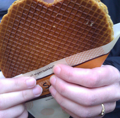 Marco and I took a walk on Sunday and spotted a few cute heart-shaped stroopwafels in their shop window: