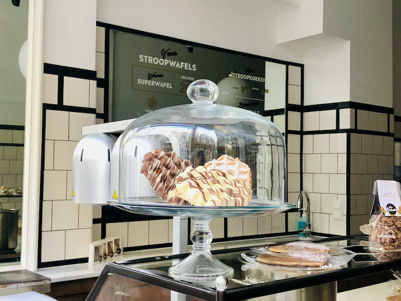Stroopwafels being the Dutch delicacy of two thin wafels with caramel syrup in the middle (English Wikipedia). They were originally made in Gouda in the 19th century. In my opinion, the best way to eat them is from a street vendor while they are still warm. There is a local company by the name of Van Schaik (official website) which makes them. Usually they have a street stand but recently they also opened a store in the same area on Venstraat.